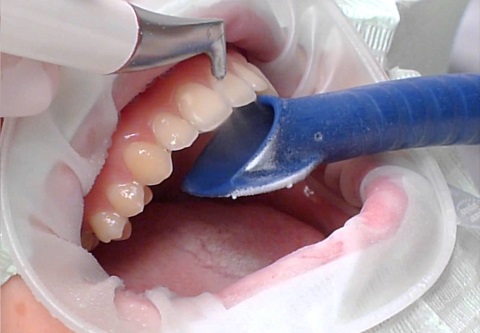 Bước 2: Dùng thiết bị cạo vôi siêu âm để làm tan rã vôi răng toàn diện