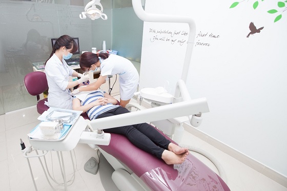 (Bác sĩ Nguyễn Thị Mỹ Hạnh thực hiện cạo vôi răng và đánh bóng răng bằng máy siêu âm tại Dentel)