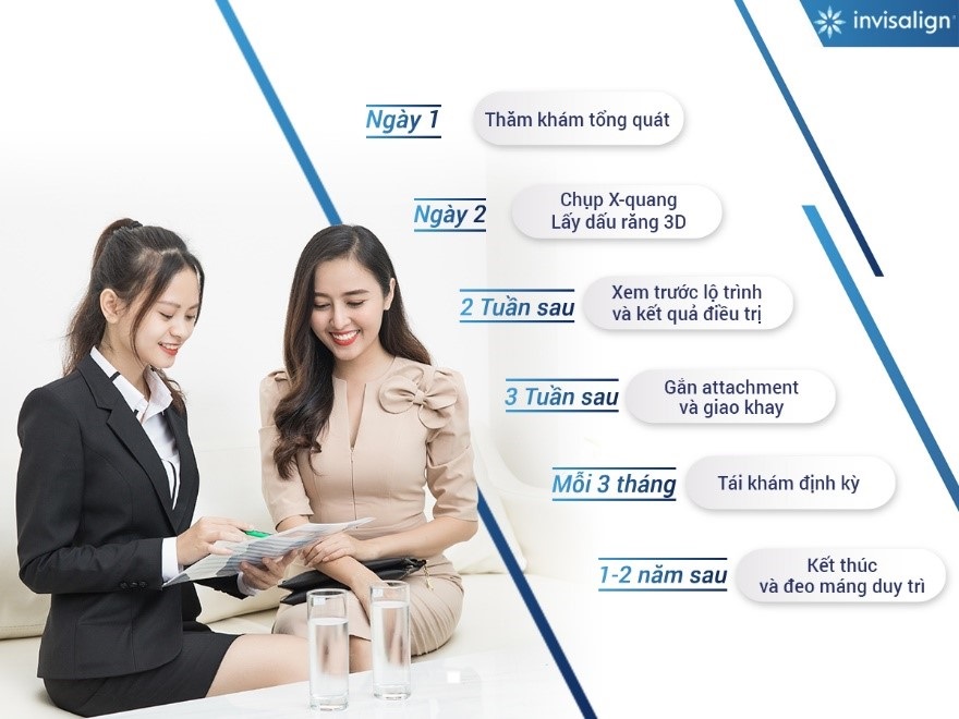 Gắn attachment và nhận bộ khay niềng Invisalign đầu tiên (thay mới khay niềng sau mỗi 02 tuần).